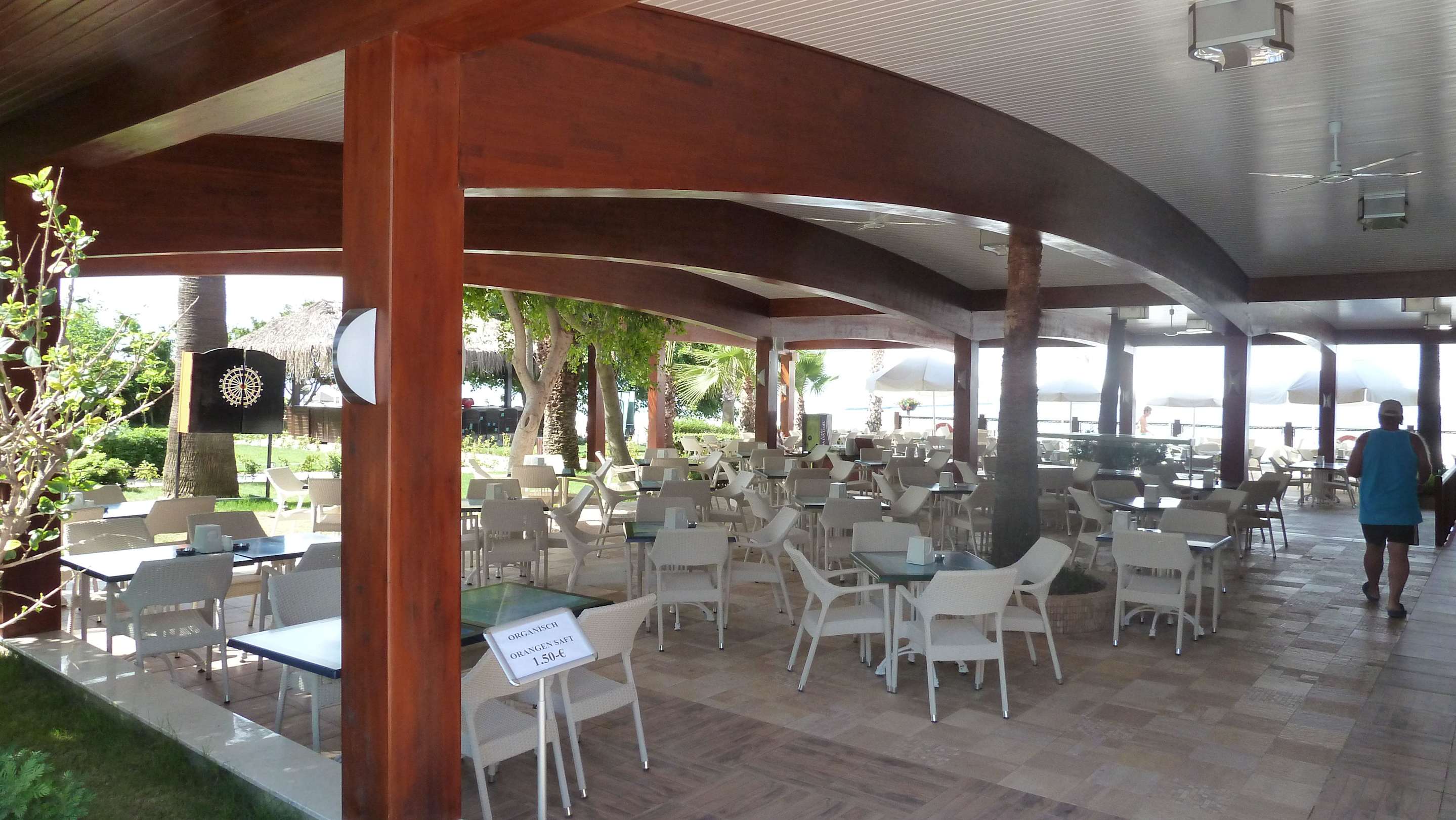 hier kann man das Mittagessen einnehmen, hier gibt es nachmittags Kuchen, Obst und Eis, 1 x die Woche Osmanisches Essen, die Bar ist bis 2 Uhr offen (je nach Frequentierung)