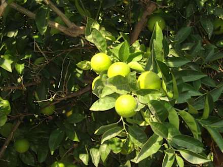 Die Gartenanlage sind voll von schwer tragenden Mandarinenbäumen.....