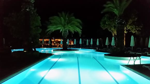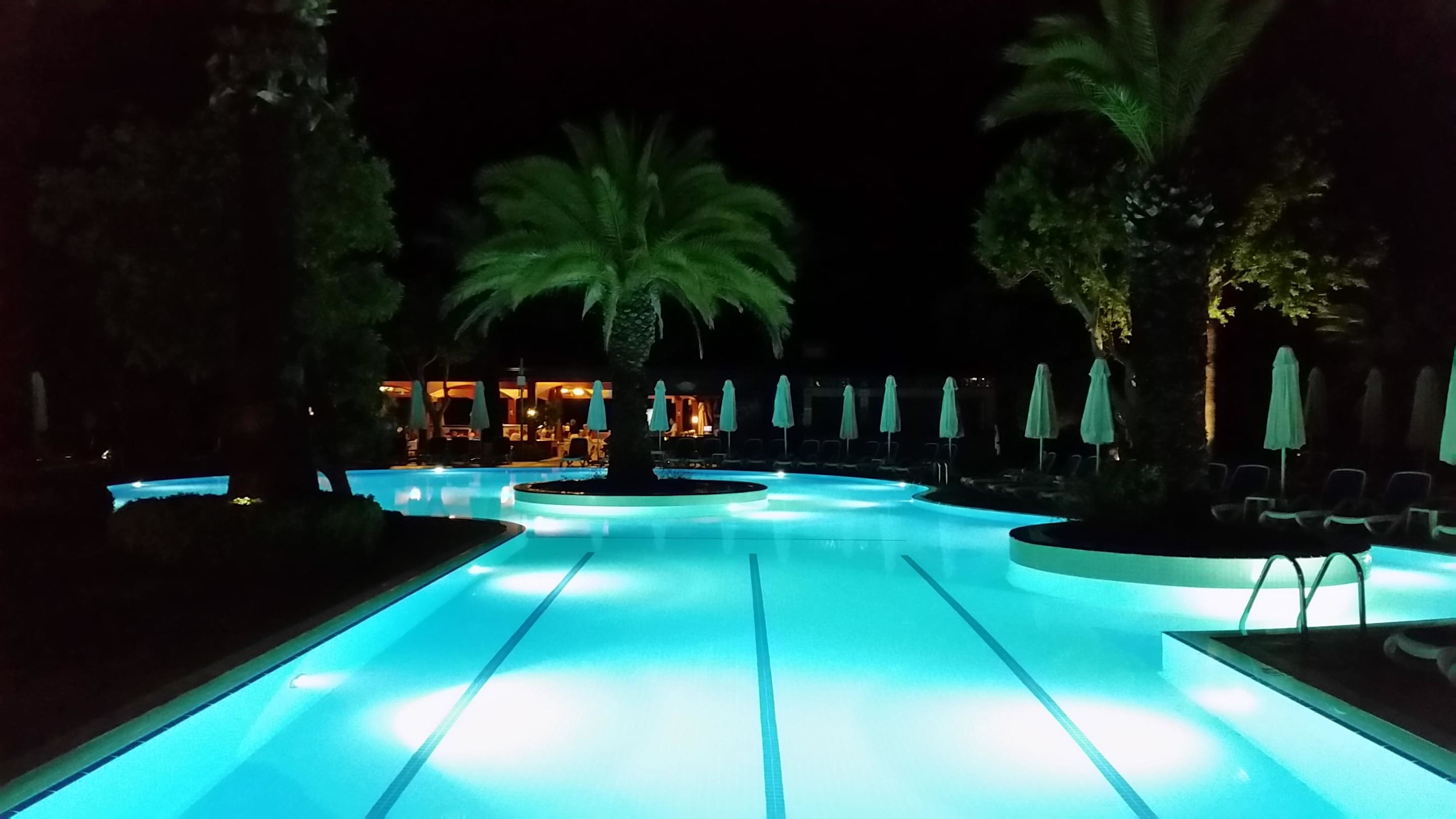 Poolanlage am Abend