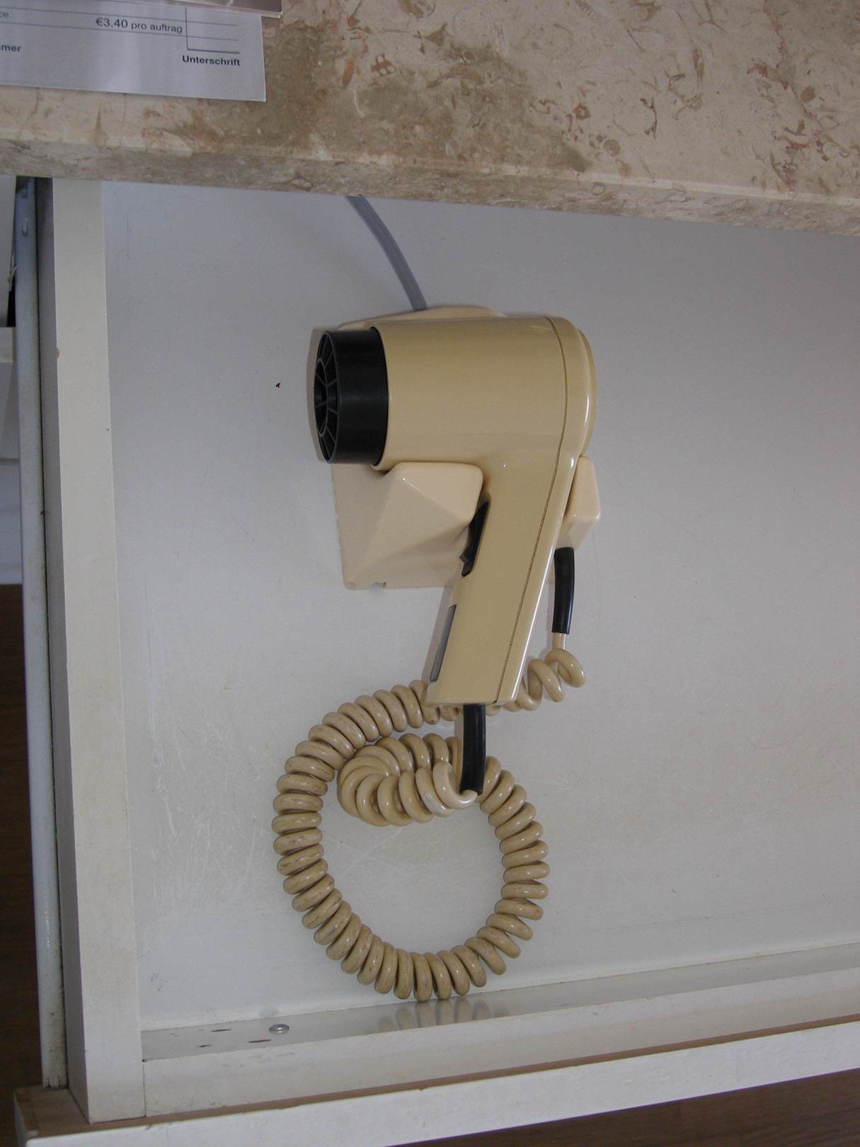 Vergilbter Fön aus der Zeit der Hoteleröffnung