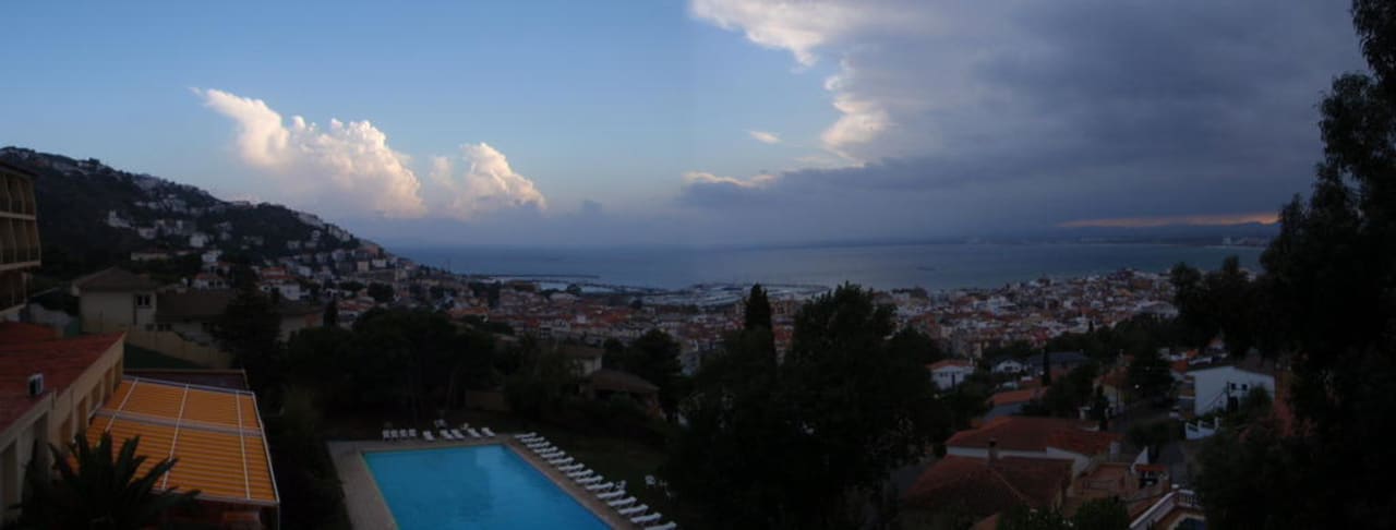 Ausblick vom Balkon zur Stadt/Strand und Hafen