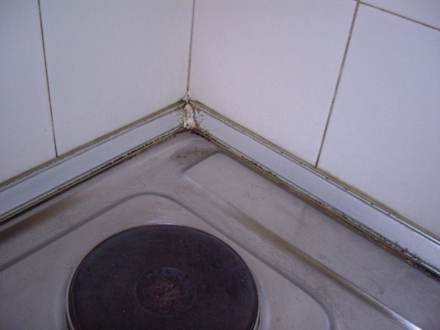 KocheckeWas das für Flecken an den Leisten bei der Herdplatte/Spüle waren, wollte ich nicht näher untersuchen...