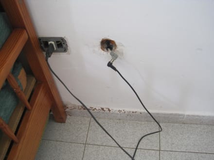 StromkabelHier sehen Sie wie die Stromkabel aus der Wand herausschauen und offen liegen. Absolute Lebensgefahr