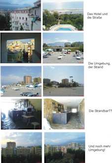 Hotel und UmgebungSie sehen hier das Hotel, die Hauptstraße, die direkt Umgebung und die so genannte Strandbar.
