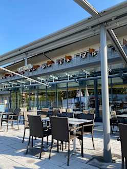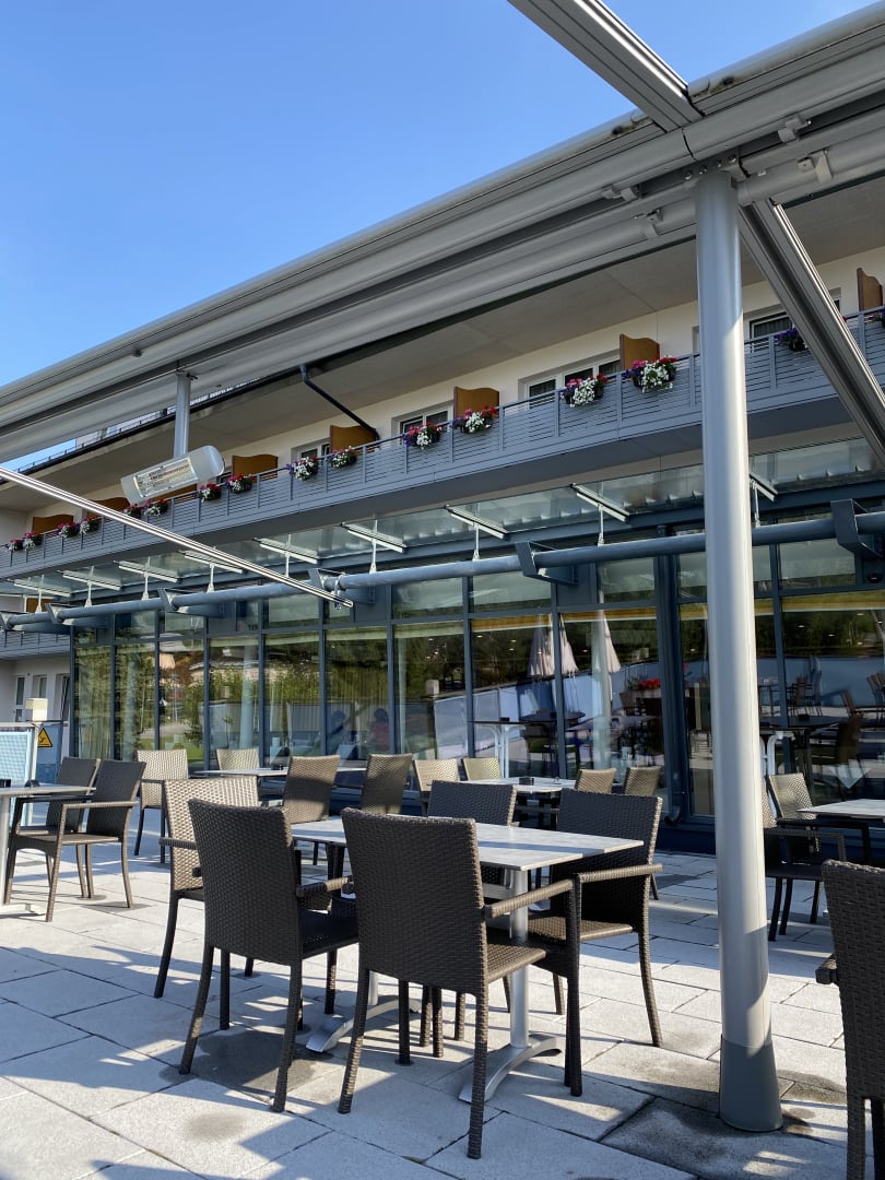 Auf der Terrasse kann man Abends leckere Cocktails trinken