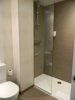 Toilette und große Dusche