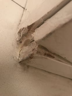 Notdürftig repariertes Badschränkchen