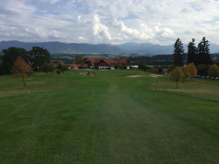 18 Loch, Blick auf das Hotel