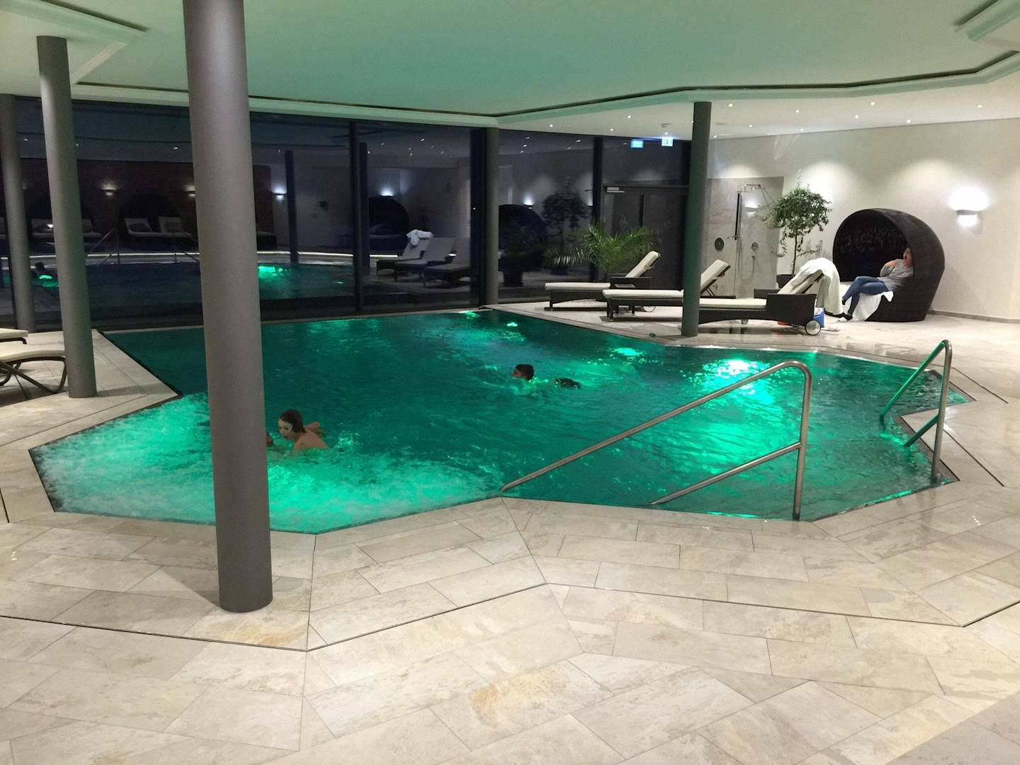 PoolDer ganze Wellnessbereich ist super schön und sehr modern (Edelstahl-Pool mit wechselnder LED Beleuchtung)