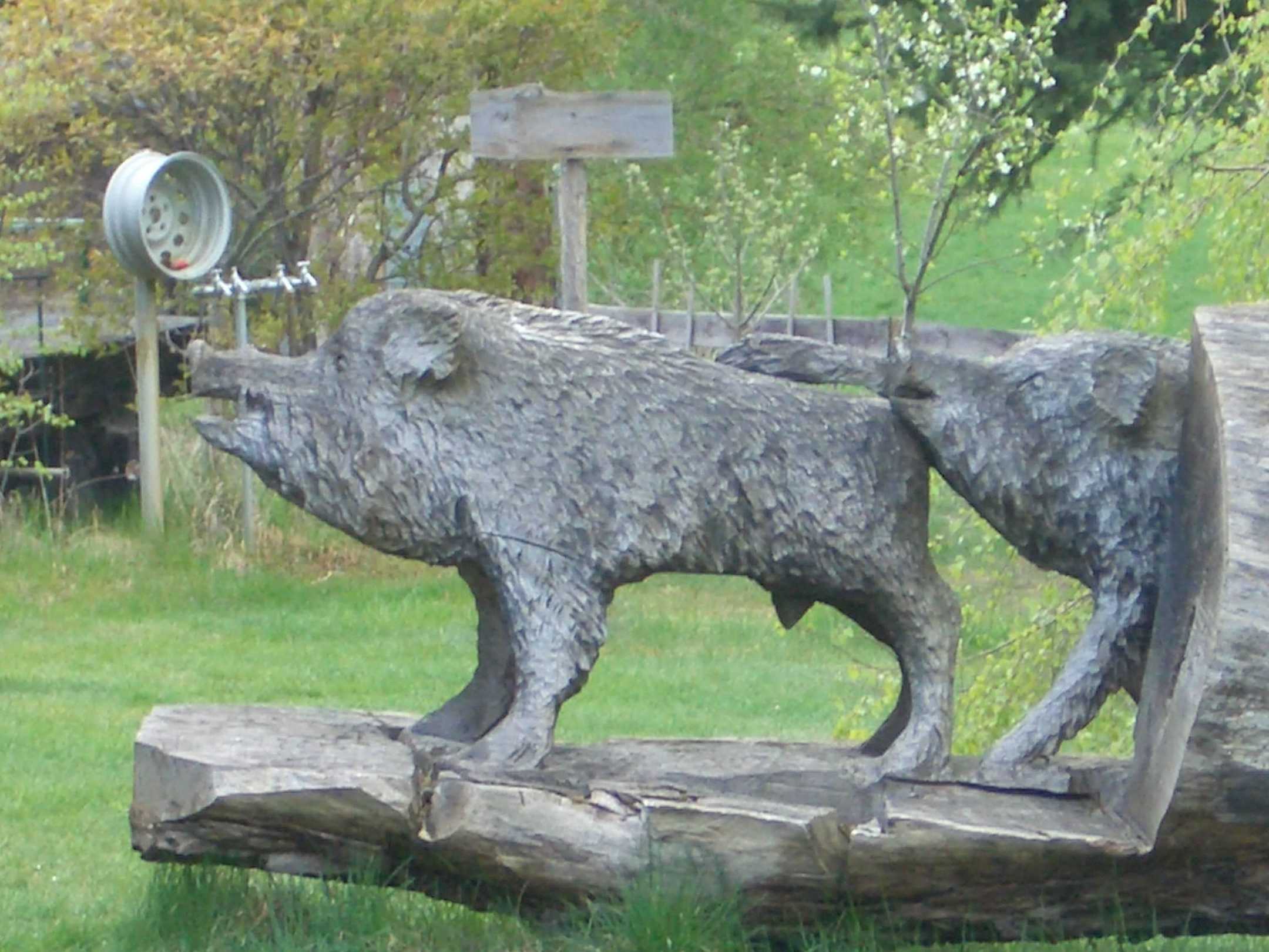 Holzgeschnitzte Wildschweine