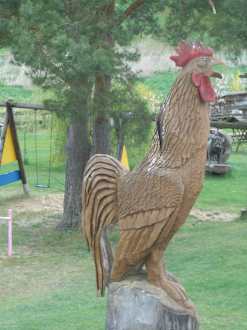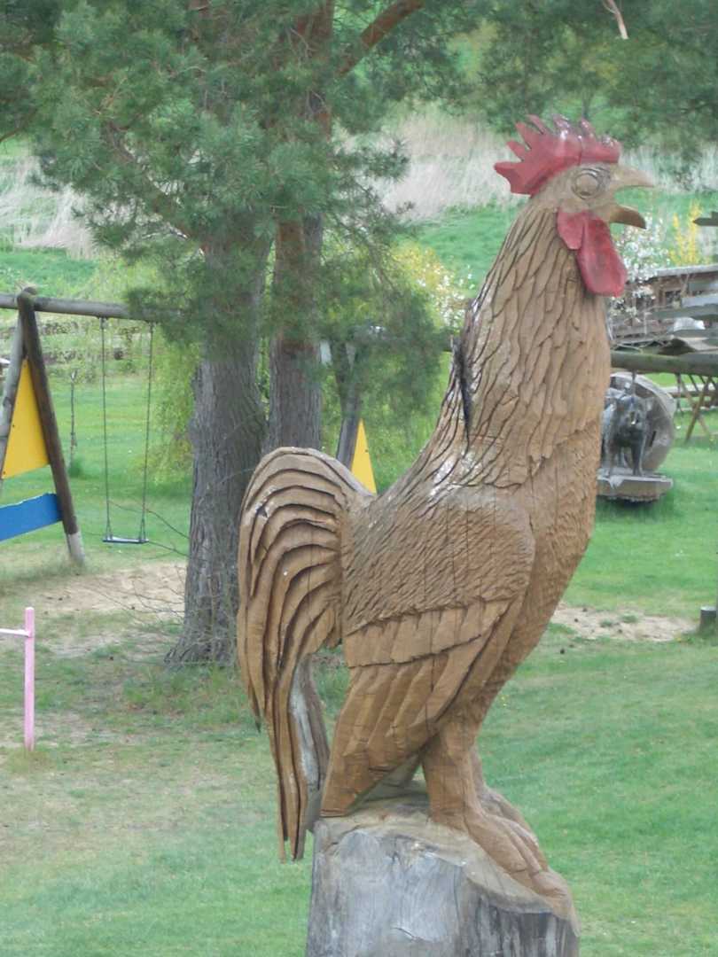 Holzgeschnitzter Hahn