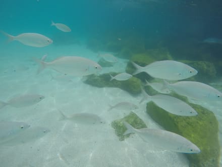 An den Strand schwimmen übrigens Fische, nicht weit weg vom Ufer und super zum Schnorcheln.