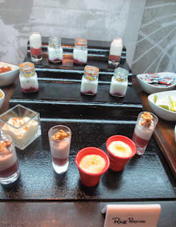 DessertLeckere toll präsentierte Puddings und Milchreis zur Auswahl, .........wenn es denn nach dem auswahlreichen Frühstück noch reinpasst ;O).