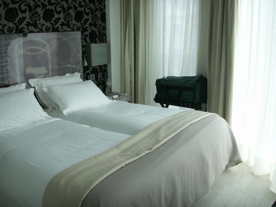 Zi 504 - Blick auf Bett von Zi-Tür ausPlatz li & re v Bett jeweils sehr knapp bemessen, zw Bett-Fussende u Fenster ca 30cm...