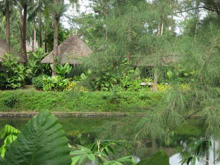 Bungi im DschungelSo stehen die meisten Einzelbungalows mitten im Grünen umgeben von der Lagaune. Allerdings sehr schattig und Moskito behaftet