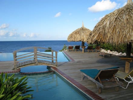 Poolanlage mit Meer im Hintergrund