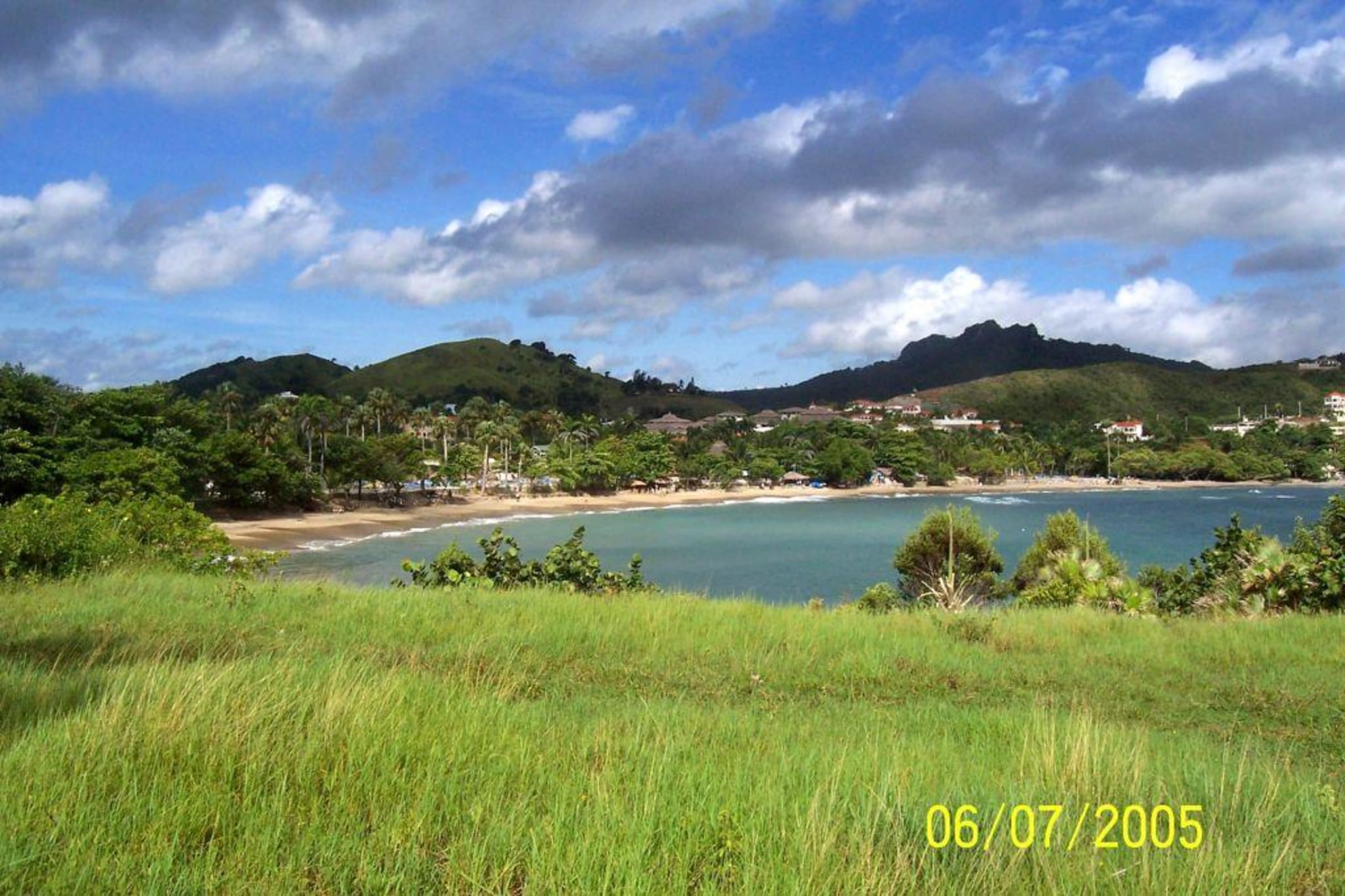 Blick von der Bucht zum Strand des Hotels