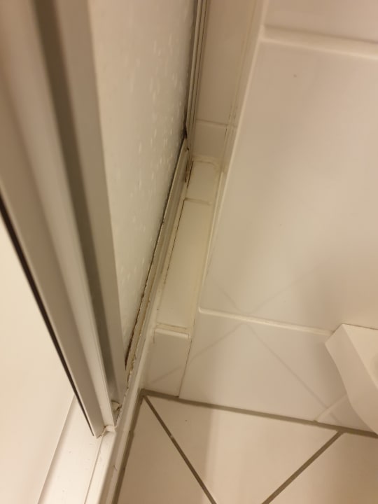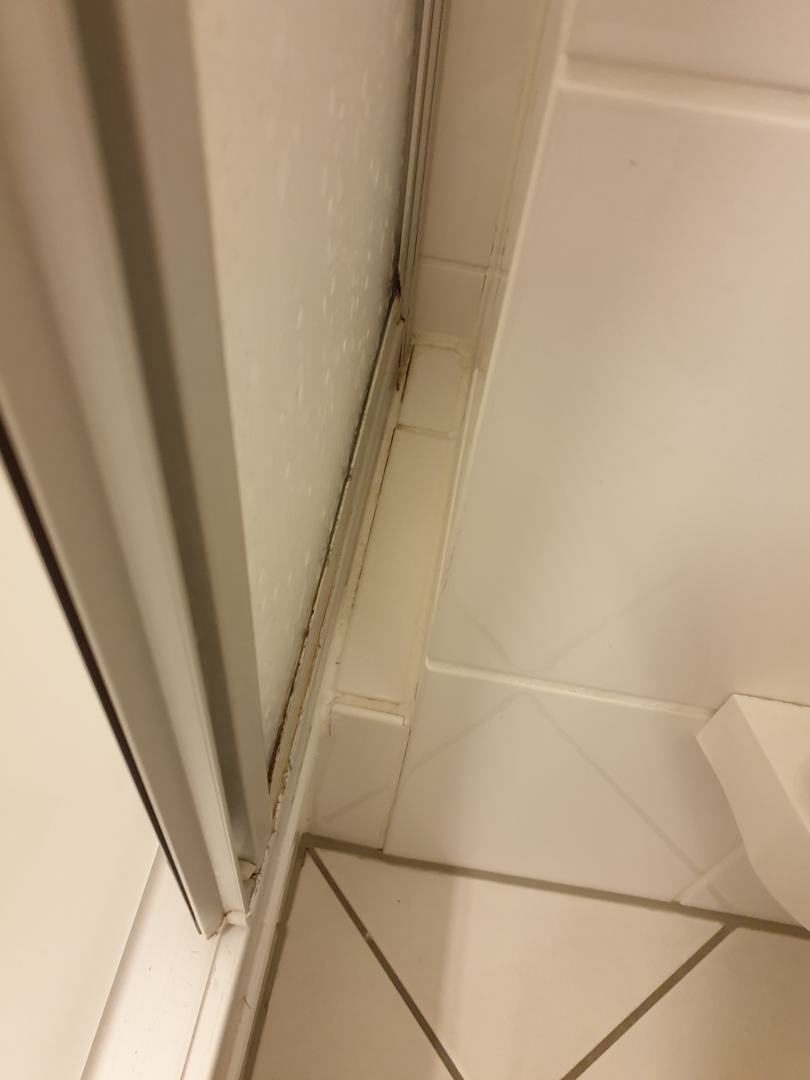 Duschkabine von aussen und innen mit Schimmel