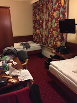 ZimmerSelbst für 120 Euro die Nacht erwartet man nicht übers Eck und ohne Sichtkontakt (wegen Schrank) zu nächtigen