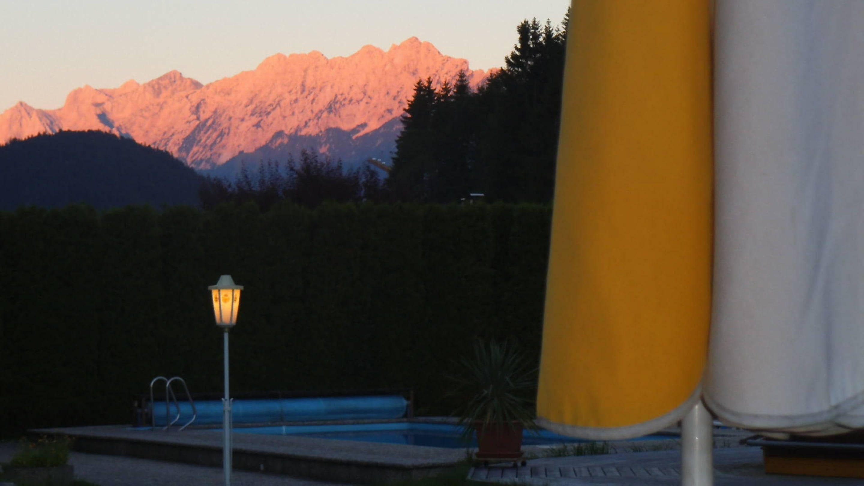 Einzigartiges Berg-Panorama abends von der Terasse