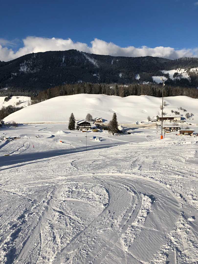 Blick von der Skipiste auf den Hagerhof