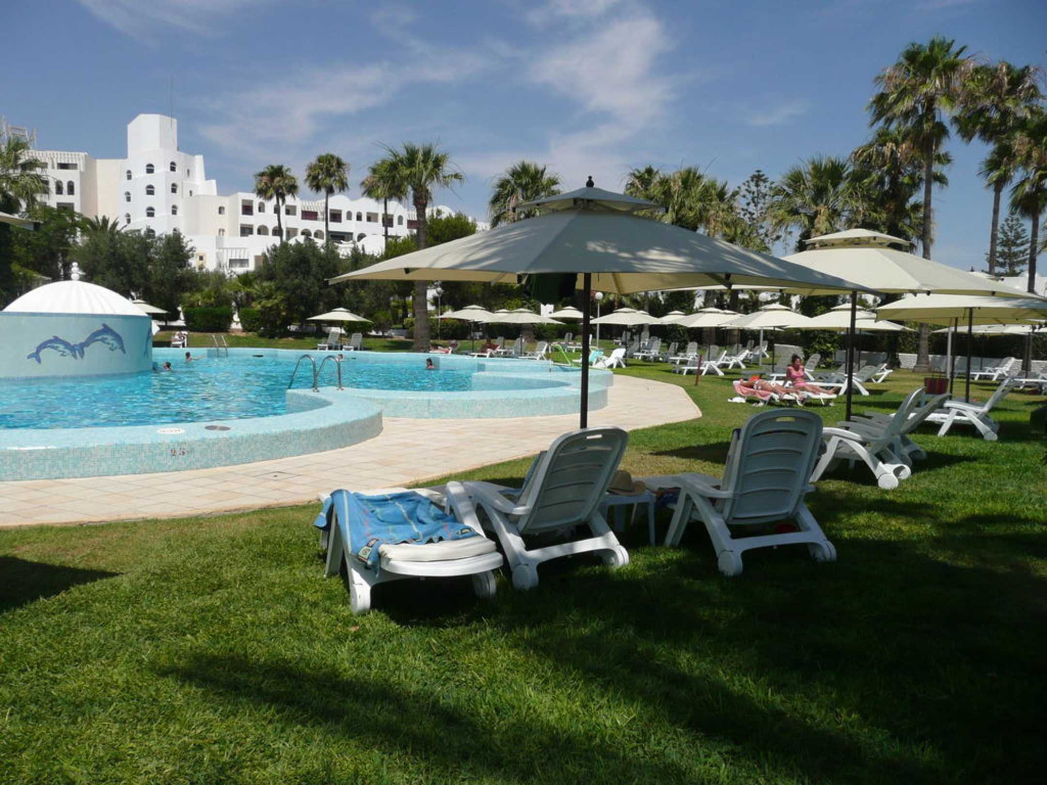 Blick vom Pool zum Hannibal Palace.