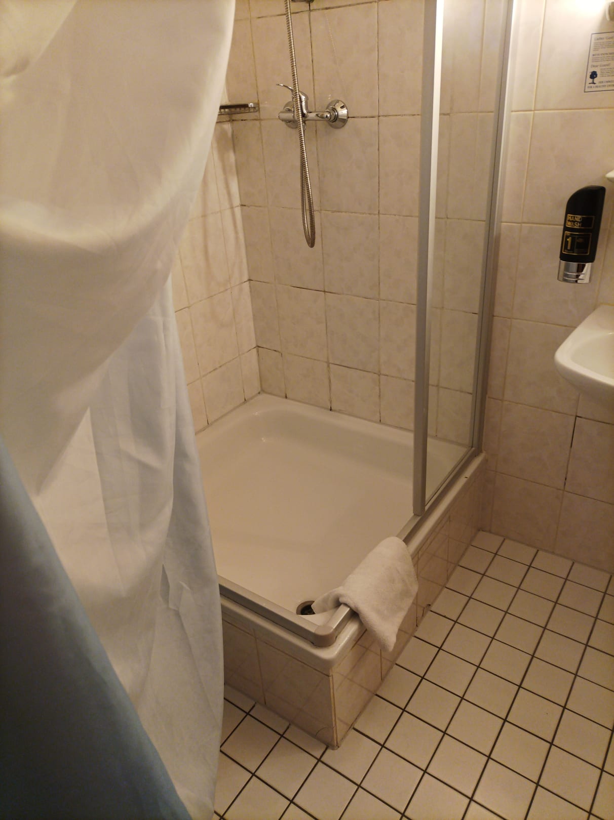 Fehlende Duschwand mit Vorhang ersetzt...