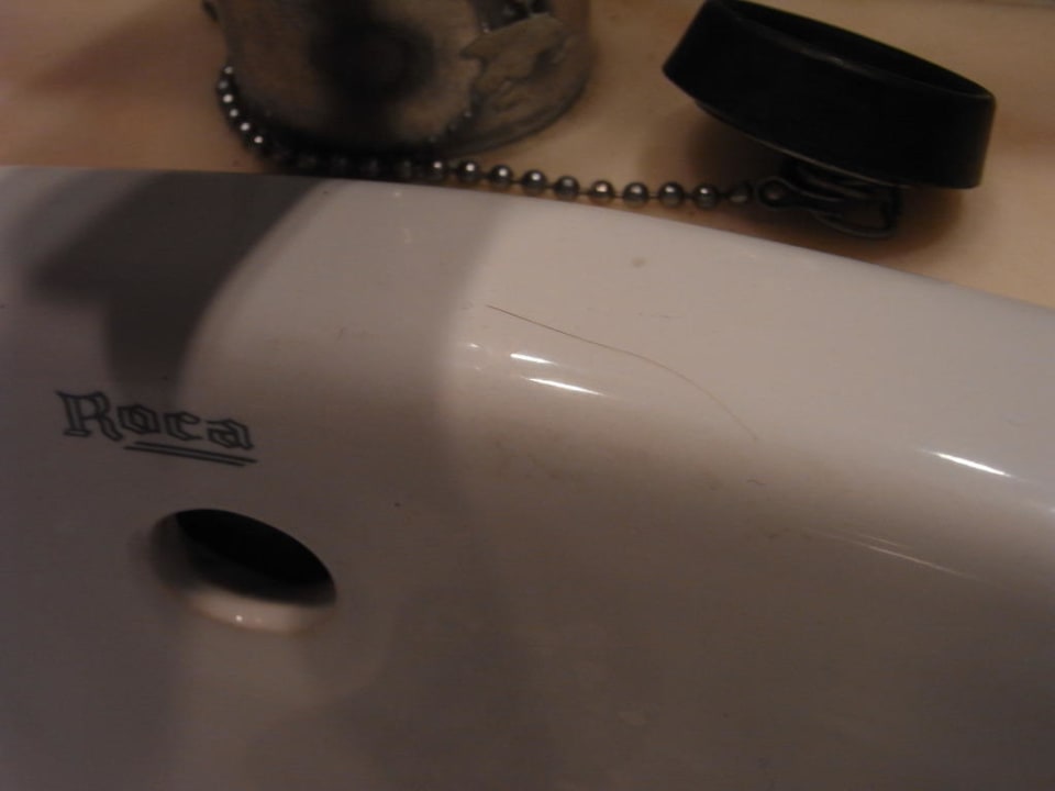 Haare auf Waschbecken und Bidet
