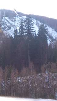 Der Blick aus dem Fenster geht auf die Skiflugschanze von Harrachov. Wunderbar - wenn ich`s nur nicht schon gewohnt wäre nach 4 Jahren in diesem Hotel.