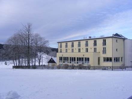 Hotelansichtzu sehen ist der Neubau vom Rennsteig, unten ist die Gaststätte rechts mit Kaminzimmer, in der ersten und zweiten Etage die Zimmer
