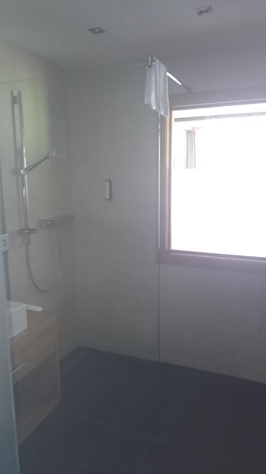 Dusche (mit besagtem Fenster zum Schlafzimmer)
