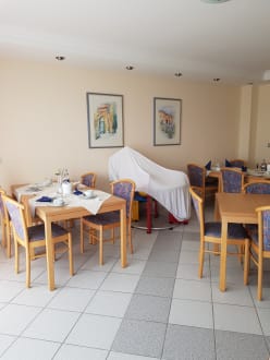 Der Frühstücksraum mit kleiner Kinder-Sitz-Ecke, leider abgedeckt