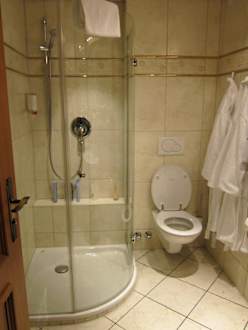 Das schicke Badezimmer... mit geräumiger Dusche. Und es gab zwei Bademäntel (und Badeschlappen) für uns. Wirkt sehr sauber. War es auch.