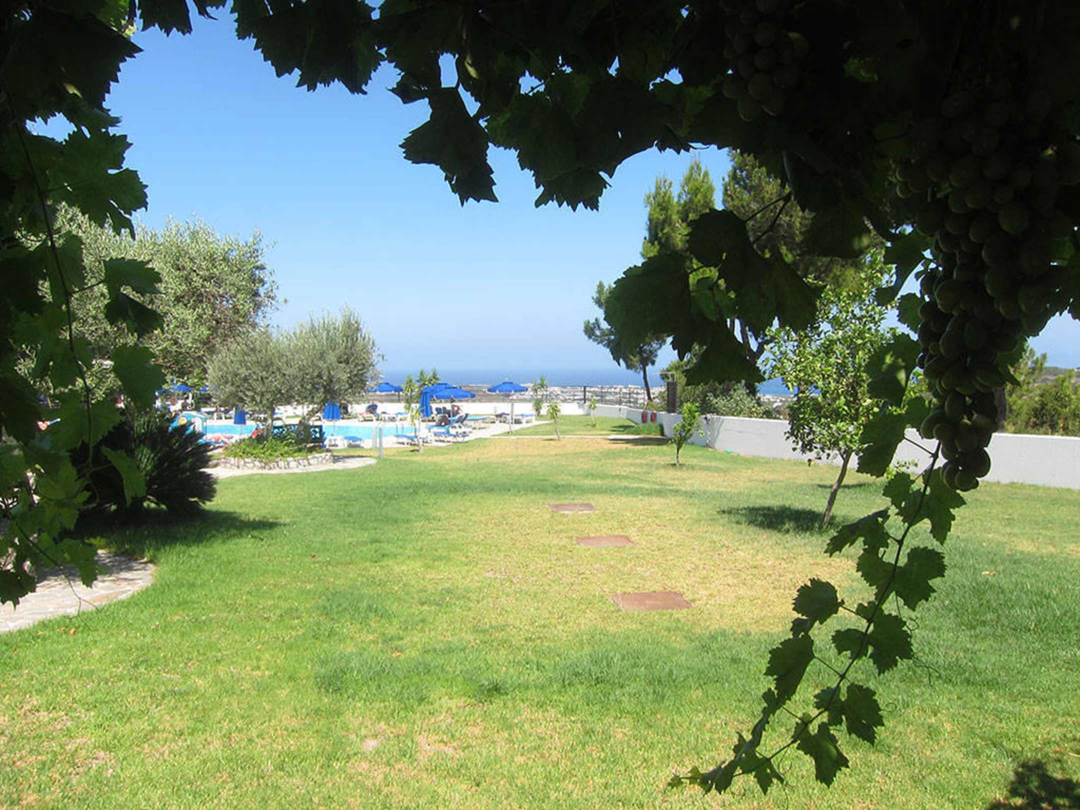 Blick von der Terrasse zum Pool