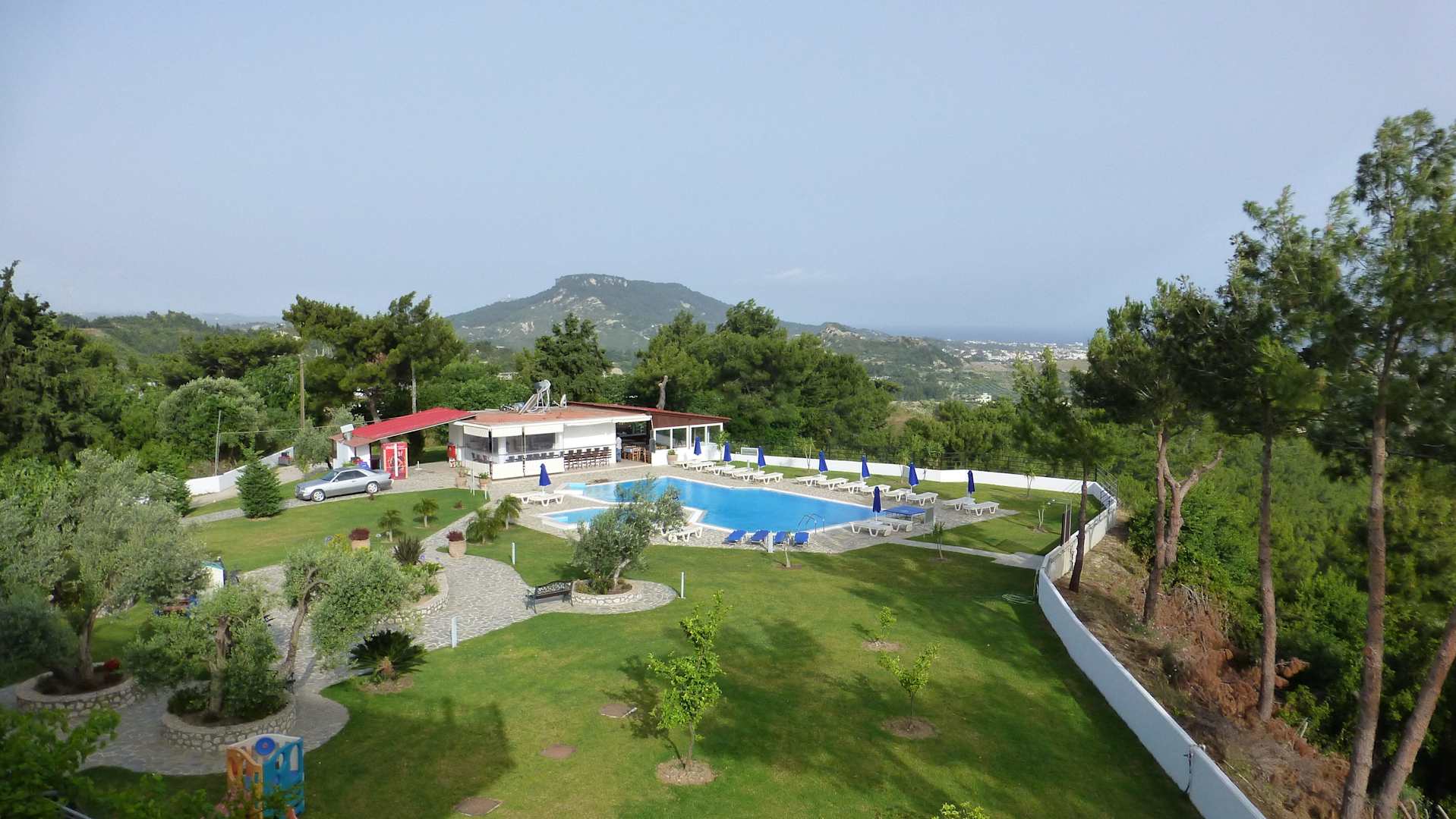 Garten, Pool und Restaurantbereich