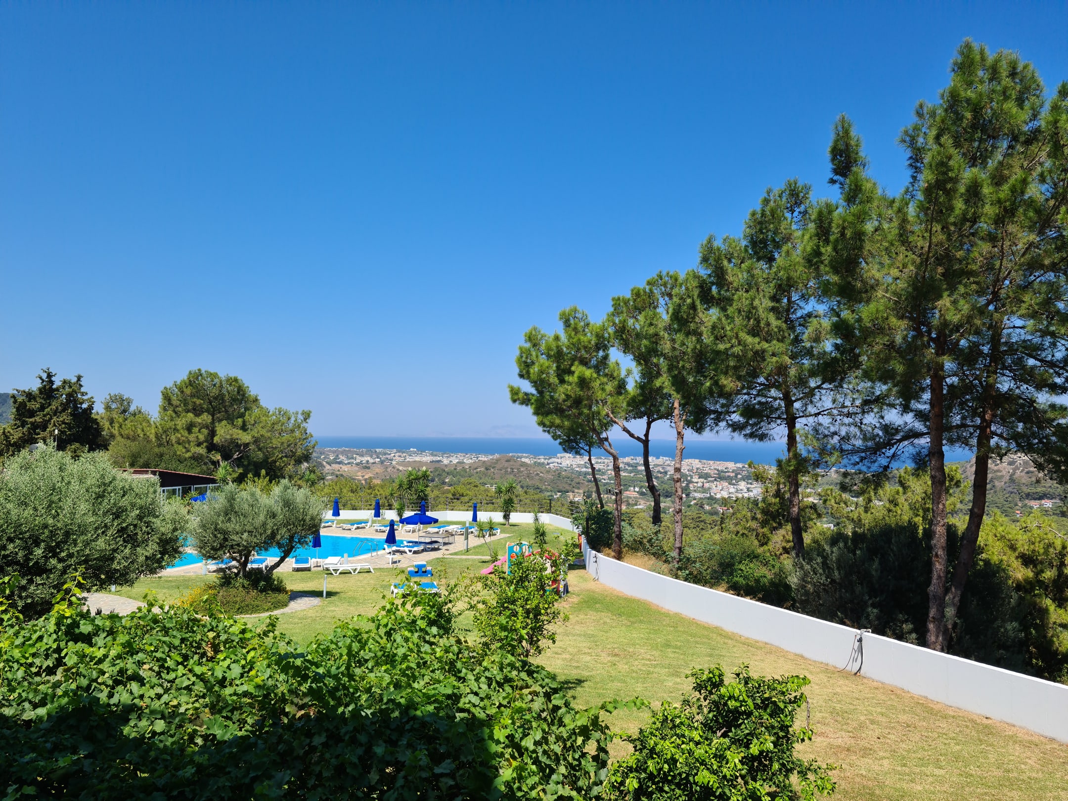 Aussicht vom 1 Stock / Richtung Pool und Stadt IXIA und zum Meer > einfach Traumhaft