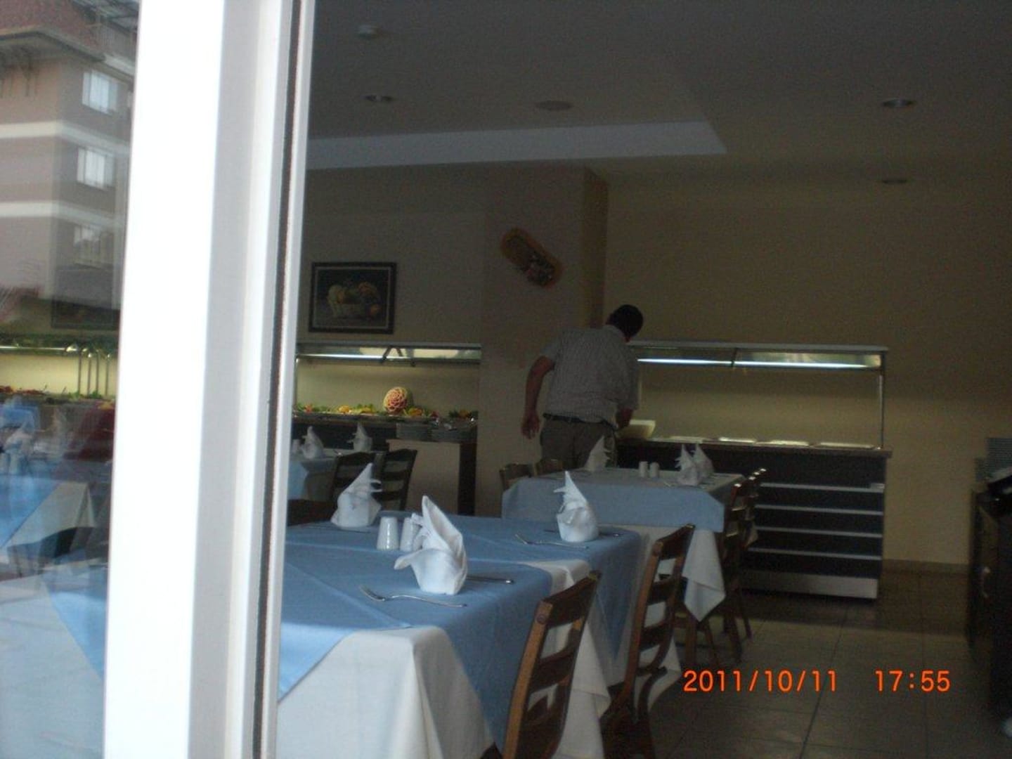 Restaurant SpeisesaalMalerarbeiten bei schon gedeckten Buffet Sehr schmackhaft es wurde nichts abgedeckt
