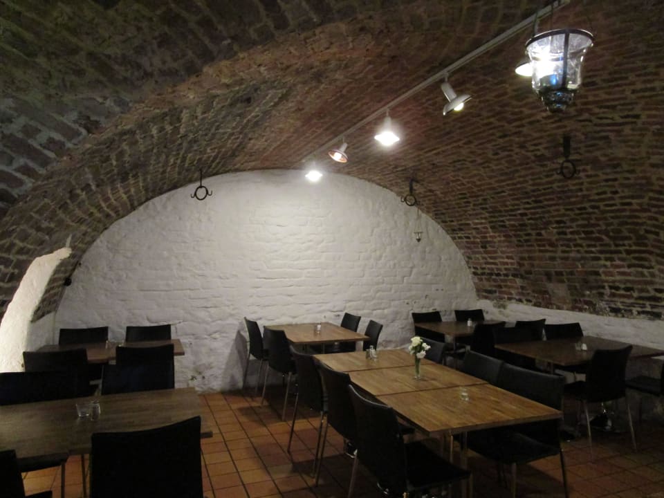 Sehr enger Frühstücksraum im Gewölbe