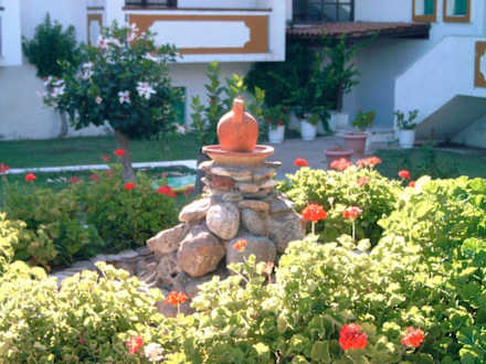 Arrangement im gepflegten Hotegarten des Hotls Hermes auf Kos in Marmari.
