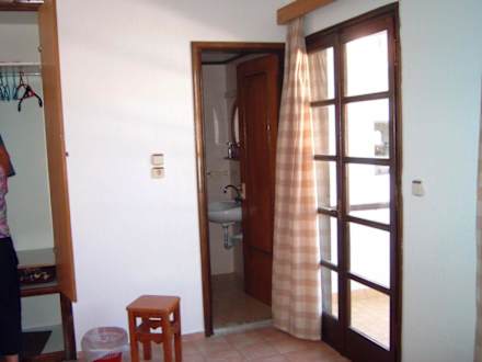 Blick auf Balkontür und Bad im Hotel Hermes auf Kos in Marmaris