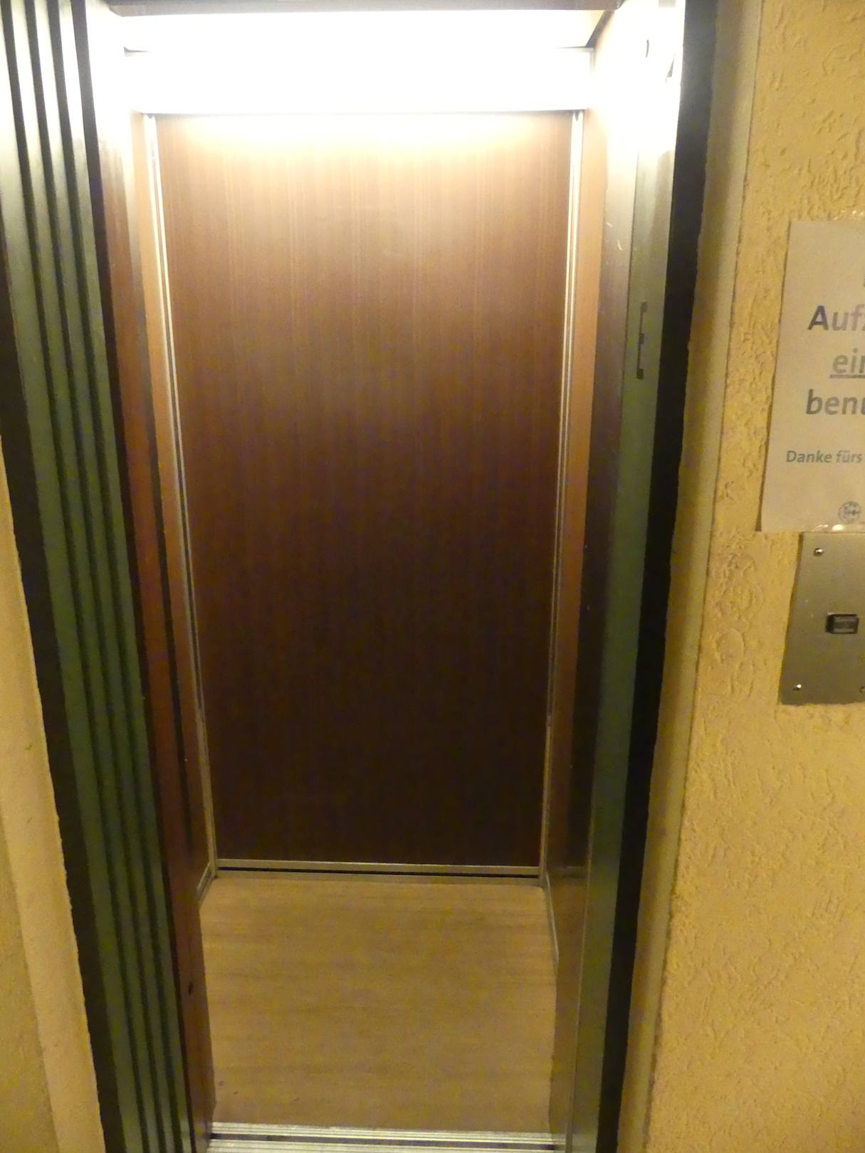 Fahrstuhl. Die Bitte des Hotels nur einzelnt zu benutzen.