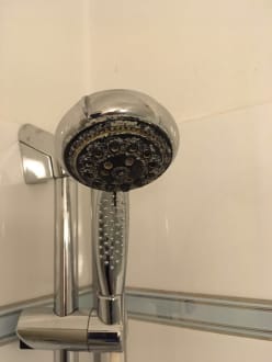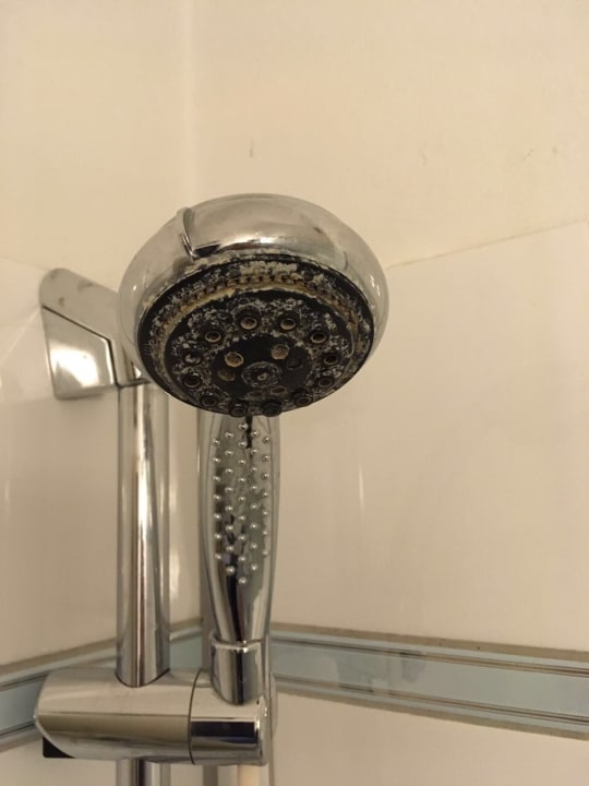 Die Duschbrause.... das Wasser spritzte überall hin, nur nicht da wohin es sollte.