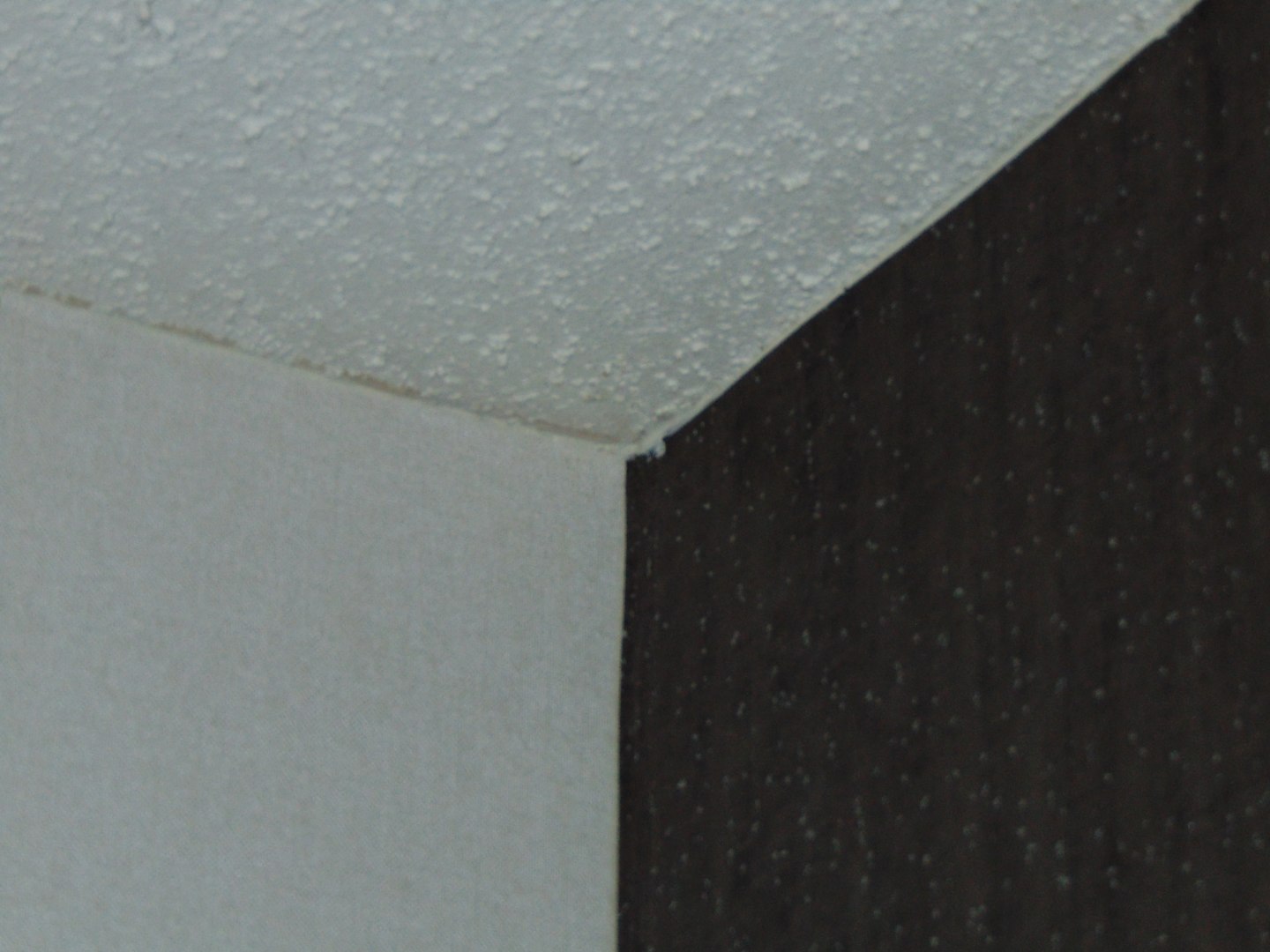 Billig wirkender Spritzputz im Deckenbereich.
