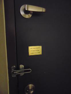 Verbindungstür mit Hinweisschild aus dem letzten Jahrhundert... ebenso stümperhaft gestrichene Tür.