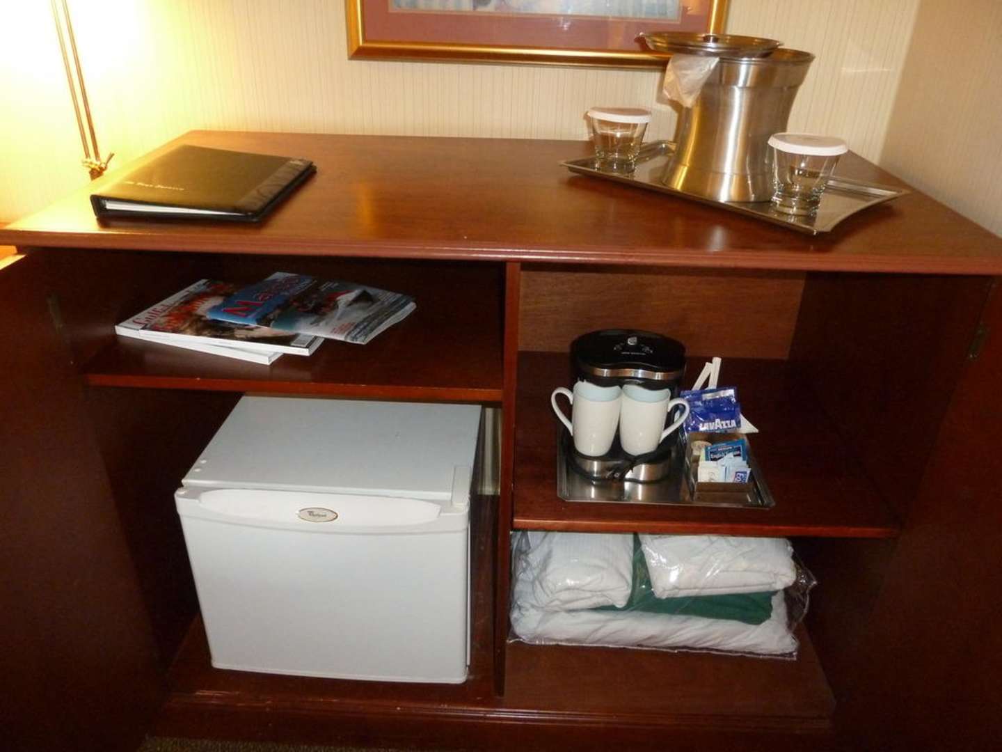 Kühlschrank und Kaffee-/Teemaschine.