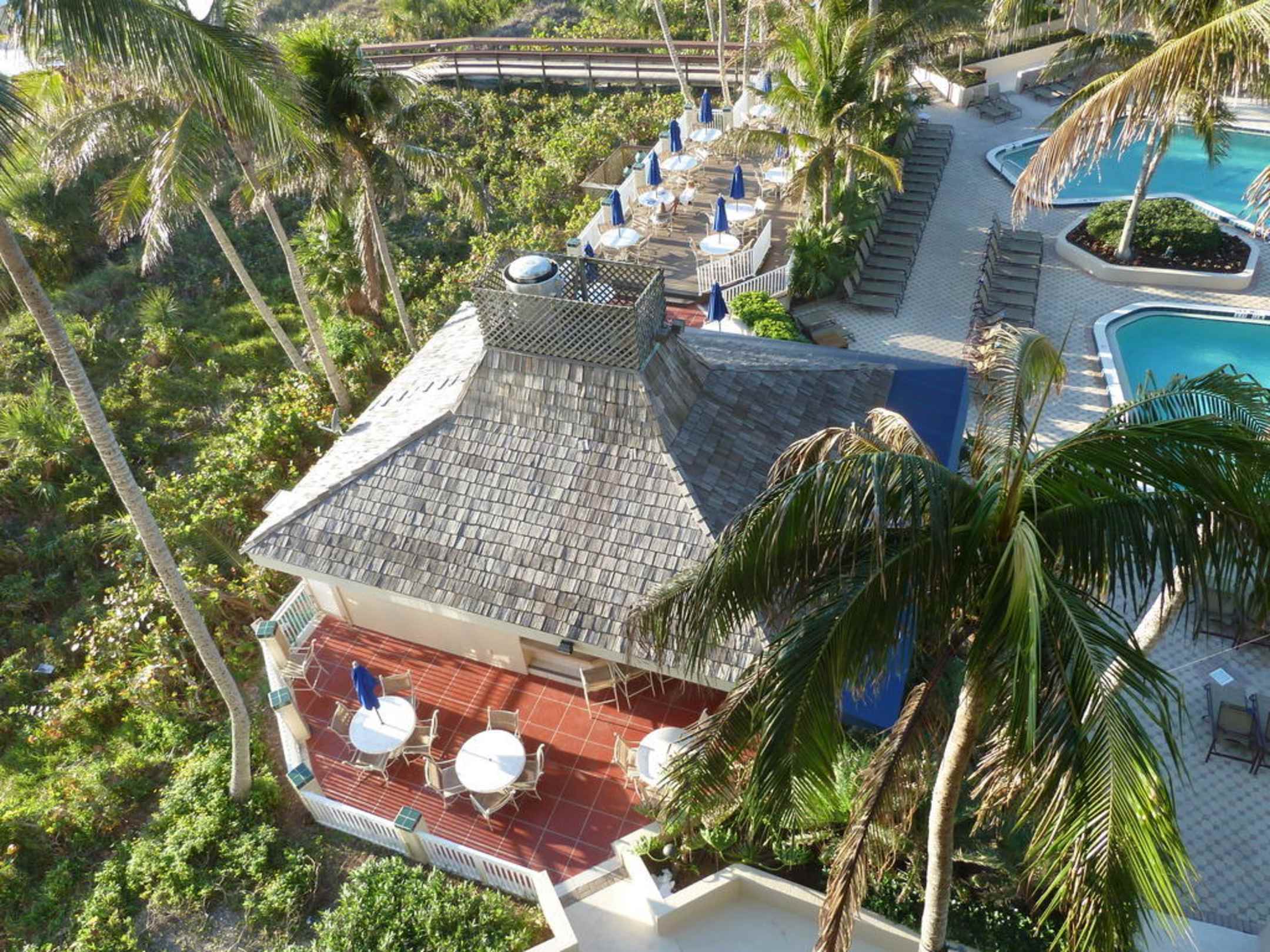 Beach Club Grill mit Terrasse zwischen Strand und Pool.