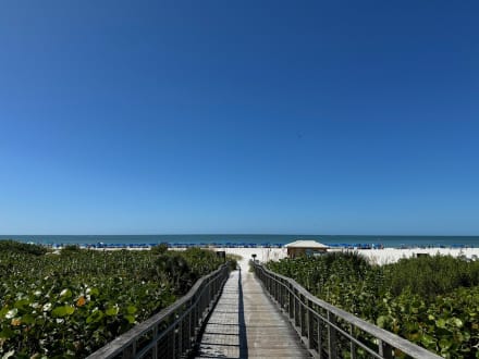 Der Steg vom Hotel zum Strand