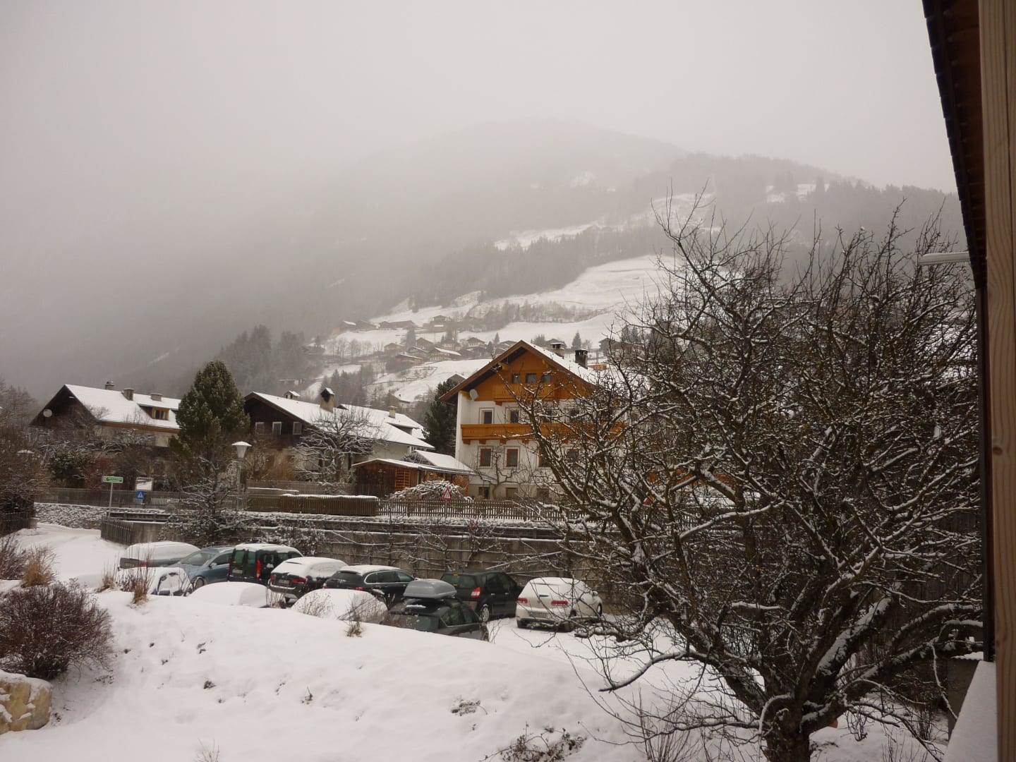 Neuschnee, Parkplatz hinterm Haus