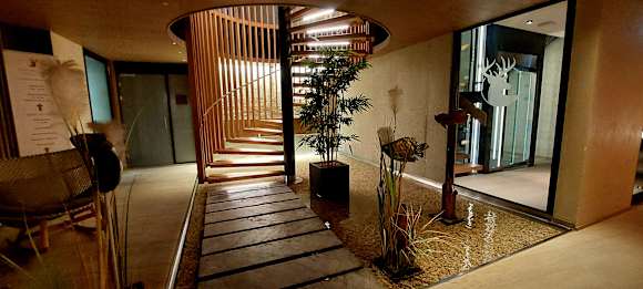 Aufgang vom Sauna- und Fitnessbereich zur Wellnessabteilung