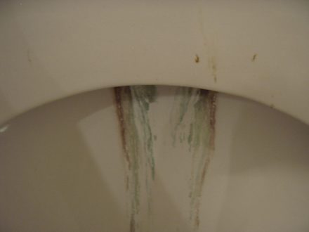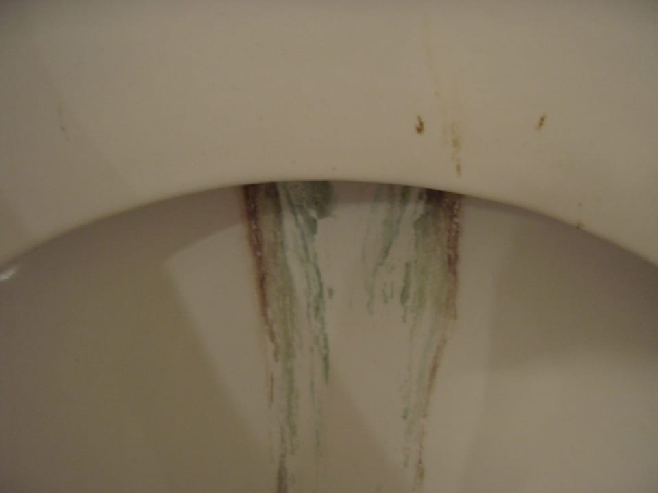 Die Toilette mit Hinterlassenschaften des letzten gastes